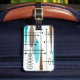 Atomzeitalter Mitte des Jahrhunderts Moderne Abstrakte Gepäckmarke, Design in braun und aquamarin. Ideal für alle, die die Atomzeit und die inspirierte Zeit der Mitte des Jahrhunderts schätzen.