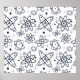 Atomic Mitte des Jahrhunderts nahtlos Muster. Vintage Darstellung. Treten Sie zurück in den 50er mit einem atomaren Muster aus der Mitte des Jahrhunderts, das Wissenschaft und Stil verbindet. Treten Sie ein in eine Zeitkapsel: Atomic Mitte des Jahrhunderts malt eine Touch von 50er-Wissenschaft und Stil. Atom, 50er, Mitte, Jahrhundert, nahtlos, Wissenschaft, Stil, Muster, Hintergrund, abstrakt, Illustration, Textur, Dekor, Papier, Mode, Vintag, Innen, Retro, Sterne
