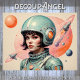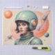 Eine stilvolle Darstellung einer Frau in einem schlichten Anzug und Helm, Set vor einem rosa Hintergrund. Das Design verkörpert die ästhetische Ästhetik des Atomzeitalters, die retro-futuristische Elemente mit modernen Einflüssen aus der Mitte des Jahrhunderts kombiniert. Raketen und abstrakte Himmelsmotive verstärken das Gefühl von Optimismus und Erkundung und spiegeln die Faszination der Ära auf Weltraumreisen wider.