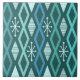Ein Retro-Kunstmuster der 50er Jahre mit geometrischen Hohldiamanten und Sternen im Stil der Atomzeit. Die Farben sind aquamarin, türkis, aquamarin und ozeangrün.