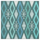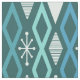 Ein Retro-Kunstmuster der 50er Jahre mit geometrischen Hohldiamanten und Sternen im Stil der Atomzeit. Die Farben sind aquamarin, türkis, aquamarin und ozeangrün.