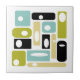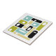 Diese trendige, moderne Keramik-Kachel aus der Mitte des Jahrhunderts weist abstrakte Rechtecke und weiße Ovale in den Farben Aquablau, Avocadogrün, Gelb, Weiß und Schwarz auf. Dies wird eine fantastische Ergänzung zu Ihrem Tiling-Projekt!
