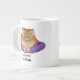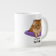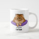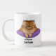 Eine orangefarbene Perserkatze auf einem lila Kissen zeigt ihre Einstellung.