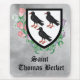 Thomas Becket (1120-1170) lebte und starb vor dem heraldry-Alter und trug während seines Lebens kein Wappen. Als solche werden seine Arme angeblich zugeschrieben. Im heraldry-speak werden seine Arme als "argent, drei choughs real, zwei und eins" beschrieben, d. h. drei naturalistisch gefärbte rote Kakteen auf einem silbernen (oder weißen) Feld, das mit zwei Vögeln in der oberen und einer im unteren Bereich angeordnet ist. Die Arme erscheinen frühestens c. 1400 auf monumentaler Ebene an der Decke eines der Buchten der Kathedrale Canterbury. + Auf den ersten Blick scheint der Cornisch-Husten eine seltsame Wahl für das Blazon von St. Thomas zugeschriebenen Wappen zu sein. Der heilige Thomas war Norman nicht Cornisch und ein Londoner kein Bewohner Cornwalls. + Es gibt zwei plausible Erklärungen: Gesang und Legende. Die Kantenarme sind visuelle Wortspiele, die gewöhnlich auf den Namen des Inhabers abgelegt werden. Kantenwaffen waren bei den Normannen sehr beliebt. Im Normannischen Französisch bezieht sich das Wort "Vermächtnis" auf "einen kleinen Vogel", wie das Husten. Tatsächlich werden die Wörter Kettchen und Husten oft austauschbar verwendet. Der Legende nach flog eine Krähe in die Kathedrale von Canterbury, als Becket im Sterben lag. Die Krähe lief durch und schaute sich in den Hügel, um ihre Beine zu drehen und rot zu schnarchen. Der rote Schnabel und die roten Beine unterscheiden den Cornisch-Husten (Pyrrhocorax pyrrhocorax) von den anderen Krähenfamilien (Corvidae) und vor allem von der Alpenkrähe (Pyrrhocorax graculus). Es sei darauf hingewiesen, dass eine ähnliche Ursprungsgeschichte für das Auftreten des Hustes in der arthurischen Legende auftritt. + Es gibt keine spezifischen Pflanze oder Blume, die mit St. Thomas in der gleichen Weise verbunden sind wie die Blätter und Blume des Aschebaums mit St. Etheldreda (q.v.). Wir haben uns entschieden, unsere heraltrockenen Gegenstände für den St. Thomas mit den Canterbury Bells zu verzieren, aus Gründen, die offensichtlich sein sollten, obwohl die Blume erst 1597 nach England eingeführt wurden und früher Coventry Bells hießen. Canterbury Bells (Campanula medium) haben elegante, glockenförmige Blüten in Rosa, Rose, Lavendel, Blau oder Weiß. In der Sprache der Blume stehen sie für Dankbarkeit, Anerkennung und Verpflichtung. + Image Credits (Wappen): Saints_Alots; (Canterbury Bells): Loose, originale antike botanische Schrift aus Edward Step’s Lieblingsgarten und Greenhouse-Blume (London und New York: Frederick Warne & Co, 1897), Vol. 3, Slg. 159, gegenüber S. 330, aus der privaten Sammlung des Designers Ephemera.