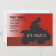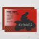 Eine sportliche ATV Einladung, die das Silhouettebild eines ATV und des ridder gegen einen roten Hintergrund der Steigung und eine tolle schwarze und rote MusterStraßendecke kennzeichnet. Die Karte ist einfach, mit Ihrer Benennung, Schriftart, Schriftartfarbe und Wahl von sechs Papiersorten besonders anzufertigen.