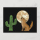 Niedliches lustiges Howling coyote Postcard Design hat den Mond und einen Kaktus im Hintergrund.  Kann auch benutzerdefinierten Text bei der Bestellung hinzufügen.