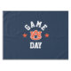 Dieses temperamentvolle Tischdecken zeigt stolz Unterstützung für die Auburn University! Es zeigt das ikonische Auburn "AU" Logo, das in seiner Mitte deutlich sichtbar ist und in traditioneller orange und blau gehalten ist. Oben und unterhalb des Logos werden die Worte "GAME" und "DAY" mutig in weißen, gewölbten Schriftzeichen präsentiert, die die Spannung des Spieltages perfekt einfangen. Zwei lebendige orangefarbene Sterne flankieren das Logo "AU" und ergänzen das energetische Display. Der fette marineblaue Hintergrund unterstreicht die Teamfarben und eignet sich somit hervorragend für Ausrutscher, Party oder jede Ansammlung. Er verkörpert den Wettbewerbsgeist und die Stärke der Auburn Tigers.