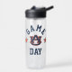Diese Spirituosenflasche zeigt stolz die Unterstützung für die Auburn University am Spieltag! Es zeigt das ikonische Auburn "AU" Logo, das in seiner Mitte deutlich sichtbar ist und in traditioneller orange und blau gehalten ist. Oben und unterhalb des Logos werden die Worte "GAME" und "DAY" mutig in blauer, gewölbter Schrift präsentiert, die die Spannung des Spieltages perfekt einfangen. Zwei lebhafte orangefarbene Sterne mit blauen Konturen flankieren das Logo "AU" und ergänzen das energetische Display. Dieses wirkungsvolle und erkennbare Design eignet sich ideal, um Hydrid bleibe und gleichzeitig die Treue zu den Auburn Tigers zu vertreten, sei es im Spiel oder unterwegs.