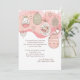 Gegen zarte rosa Wellen hängen wunderschön dekorierte Ostereier und Herzen direkt über dem weißen Stimmungsgebiet. Dieses schöne Design ist perfekt für jede Osterfeier.