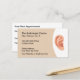 Audiologe oder Otolaryngologe Hörzentrum Client Termin Visitenkarten mit einer Ohrgrafik und benutzerdefinierten Termin-Vorlage auf der gedreht Seite unter Verwendung beider Seiten der Business-Visitenkarte erstellt.