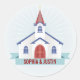 Eine klassische weiße Kapelle mit Steppel und Banner. Passen Sie Ihren eigenen Text an. Ideal für jeden christlichen, Land, rustikal, draußen, Feiern. Original Illustration von pj_design. Bitte Karo in meinem Shop für passende Artikel.