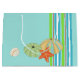 Am Meer gibt es Muscheln und Seesterne mit einem farblich koordinierten gestreiften Akzent. Hier auf grünblauem Hintergrund dargestellt. Sie können dieses Design anpassen, indem Sie die Hintergrundfarbe ändern.