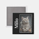 Ehre deinen geliebten Begleiter und schätze die Erinnerungen mit einem personalisierten Foto-Gedenkmagneten. Es ist ein herzliches Geschenk für sich selbst, Familie oder Freunde, das als schöne Hommage an eine geschätzte Katze dient. Fügen Sie Ihr Lieblings-Foto hinzu. Schwarz-schick-Hintergrund.