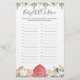 Auf dem Bauernhof steht die Rennspielkarte von ABC zum Thema Babydusche mit Aquarellbilder und Aquarell-Eukalyptusgarland und elegantem handgeschriebenem Schriftart.