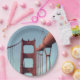 Als ich an einem sonnigen Nachmittag in San Francisco, Kalifornien, über die Golden Gate Bridge ging, sah einer ihrer massiven Seile über den Kopf. Sie erstreckt sich von der oberen rechten Ecke des Fotos bis zum Gipfel eines rot-orangefarbenen Turms in der Nähe der Mitte. Das Aufhängekabel auf der links scheint im Vergleich zu dünn, da es die Mitte der verlassen Rahmenkante trifft, die Symmetrie der Brücke, die durch die Perspektive askew gemacht wird. Von den Hauptkabeln hängen Treppenpaare, die an der links Brückenseite, die dem klaren blauen Himmel in der unteren links Ecke des Fotos einen Nadelstreifen-Effekt verleihen. Ohne die Straße im Blick wird die Geometrie der bemalten internationalen Orange-Brücke gegen den blauen Himmel betont. 35 mm, Farbfoto. Copyright © 2003 Claire E. Skinner. Alle Rechte vorbehalten.