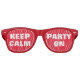 Behalt Ruhe und Party auf einer Sonnenbrille in Rottönen. Personalisieren Sie Ihre eigene lustige Keepcalm Meme Parodie. Behalt Ruhe und setze den Slogan fort. Festivals für ihn oder sie.