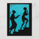 Diese Vintage schwarze Silhouette ist Set vor einem lebendigen, blauen Hintergrund. Es hat einen Mann in einem Nachtkappen mit einer Kerze und eine Frau im Stil der 20er Jahre, die auf eine Treppe klettert. Vor dem Gesicht der Frau hängen Spinnennetze und eine winzige Spinne. Sehen Sie in meinem Geschäft nach, wie Sie Produkte mit diesem Design abgleichen können.