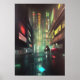 Auf der Straße kann man nachts Autos auf der Straße und im Hintergrund Wolkenkratzer sehen. Dies ist ein Kunstwerk, das von der KI generiert wurde