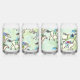 Set von vier Gläsern mit Rennpferden. Jedes Glas ist anders. Andere Party liefern dieses Design für Ihre nächste Pferderennen Thema Ansammlung.