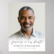 Für immer in unseren Herzen Foto Moderner Schriftzug Gedenkposter Schild. Ehren Sie die Erinnerung an Ihren geliebten Menschen mit diesem eleganten Poster-Schild, das als rührendes Tribut für eine Beerdigung, Gedenkfeier, Totenwache oder Feier des Lebens konzipiert wurde. Mit dem herzlichen Titel Für immer in unseren Herzen in moderner handgeschriebener Schrift, akzentuiert dieses Design wunderschön das Foto Ihres geliebten Menschen zusammen mit seinem Namen und Lebensdaten in Schwarz auf einem weißen Ombre-Foto-Overlay für einen klassischen und dennoch eleganten Stil. OPTIONEN: Das Beispiel wird in der Größe 18x24" auf Value-Papier (Matt) angezeigt; andere Standard- und Sonderdruckgrößen und Papierqualität, Sofort-Digital-Download-Datei zum lokalen Drucken oder Übertragen des Designs auf eine Schaumstoffplatte, ein Banner, eine Leinwand oder andere Produktvarianten sind auf der Bestellseite verfügbar. TIPPS ZUR GRÖSSENÄNDERUNG: Wählen Sie Benutzerdefinierte Größe für gleichmäßige Ränder, indem Sie Höhe und Breite proportional ändern, NACHDEM Sie auf das Symbol ENTSCHLIESSEN (sieht aus wie ein Kettenglied) geklickt haben. HILFE: Für Hilfe bei