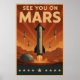 RETRO FUTURE MARS EXPEDITION POSTER - Verwandeln Sie Ihren Raum mit diesem Vintag inspirierten Kunstwerk, das die kühnste Grenze der Menschheit erfasst. Dieser hochwertige Druck zeichnet sich durch eine dramatische rot-orangefarbene Marslandschaft aus, in der elegante silberne Raketen gegen Sonnenbrände abschießen, sowie durch eine futuristische Lebensraumkuppel, die das unvermeidliche, vielplanetarische Schicksal der Menschheit verkörpert. Ideal für Weltraumfans, Futuristen und alle, die an die beststen Abenteuer unserer Zivilisation glauben, liegen jenseits der Erdatmosphäre. Die kühne 'SEE YOU ON MARS' und die moderne Ästhetik der Mitte des Jahrhunderts machen dies zu einem aufschlussreichen Gesprächsstarter für Ihr Zuhause-Büro, Spielzimmer oder jeden Raum, in dem kühne Ideen geblüht werden.