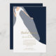 Eine Braut in ihrem Kleid und Schleier auf einem marineblauen blauen Hintergrund mit goldener Schrift (nicht metallisch) ist perfekt für Hochzeitsduscheinladungen. Mehr Farben in unserer Sammlung.