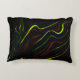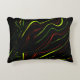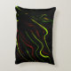 Auf schwarzem Fond zeigen sich die grünen und rote Dekokissen