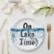 Große Fische in blauem Seenwasser mit "on lake time" Text.
