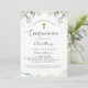 Elegante Bestätigungseinladung auf Spanisch mit schönen Aquarellfarben Eukalyptus-Blätter und Touchs von Aquarellsteinen. Ideal für die Bestätigung eines Jungen oder Mädchens. Design mit eleganter moderner Kalligraphie. Bereich für die Zeremonie Details und Empfang oder Mittag/Mittag/Abendessen/Tagungsdetails. Zurück mit weichen Aquarellfärben. Teil unserer Kollektion "Elegant Greenery Eukalyptus Wedding and Events" mit einer Vielzahl von koordinierenden Produkten. Eleganter, subtiler, moderner, minimalistischer Stil.