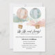 Mit diesem charmanten Heißluftballon-Geschlecht, das eine Einladung aufzeigt, kreieren Sie eine Hochzeitsfeier! Mit handbemalten Aquarellballons in sanftem Rosa und Blau, schwebend durch pastellfarbene Wolken mit golden funkelnden Akzenten, Set dieses Design den Ton für eine magische und skurrile Offenbarung.