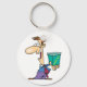 Ein Mann, der stehend eine Kiste mit der Wortqualität hält. Dieses Design sieht auf diesem Schlüsselanhänger wirklich effektiv aus
