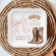 Stiefel oder Bows Gender Reveal Paper Teller mit einem Paar Western Cowboy Stiefel und einem niedlichen gurt Band-Bogen. Was wird das Baby sein?