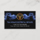 Eine elektrische blaue Blitzwelle geht über das Gesicht der Karte und zappt durch ein goldenes Glühbirnen-Logo, das Sie benutzen können. Unter dem Logo befindet sich der Firmenname, gefolgt von Ihrem angesehenen Namen und Ihren Kontaktdaten.