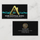 Eine goldene Zuhause sitzt in der Dunkelheit, mit einer blauen elektrischen Welle, die durch sie läuft, und beleuchtet die goldene Glühbirne. In der Nähe der Kartenbasis befinden sich der Jobtitel und die Kontaktdaten. Oben, in einem schwarzen Cover, steht das goldene Power-Plug-Logo, das Sie verwenden können, gefolgt von Ihrem renommierten Namen, Kontaktdetails und Slogan-Optionen. Eine großartige Karte für elektrische Themen. #electrician #electrical #electricalservices #electricalreparatur #lighting #lighting #electriengineering #electricalengineer #electricaltragner #electricer #electricaltragner #zazzlemade