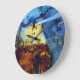 Aufgeteilter Felsen-Leuchtturm nachts Große Wanduhr