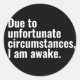 Aufgrund unglücklicher Umstände bin ich wach Text Runder Aufkleber