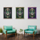 "Dieses Stück, 'Erleuchtete Geometrische Menschen', beschreibt ein kosmisches Wesen, das aus einer Matrix miteinander verbundener geometrischer Muster hervorgeht. Licht und Energie strahlend, symbolisiert die Figur die Verschmelzung der Menschheit mit den unendlichen Möglichkeiten des Universums. Die komplizierten Muster spiegeln die Vorstellung von Erleuchtung und spirituellem Erwachen wider, als ob das Wesen des Individuums mit einem höheren kosmischen Bewusstsein verschmelzen würde. Dieses Design lädt die Zuschauer dazu ein, über ihren Platz im Kosmos und die Vernetzung aller Dinge nachzudenken."