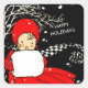 Ein niedliches Vintages kleines Mädchen mit Muff wünscht "glückliche Ferien".