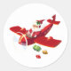 Aufkleber mit einem Santa gezeigt, der ein Flugzeug-Urlaubskunst druckt. Große Größe angezeigt Anpassen Sie dieses Objekt oder kaufen Sie, wie es ist.