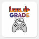 Erleben Sie mit diesem coolen Videospiel-Controller-Design eine spannende Reise in die Schule. Ideal für den Schulbesucher der Klasse 6. Enthält den Satz "Level Up Grade Six" in bunten Buchstaben mit einem Game Controller.