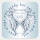 Angel Wings trauert um einen geliebten auf dem Gedenksticker. Ein Aufkleber mit dem Namen der Person, an die man sich erinnert, der sympathische Text "Ihre Flügel waren bereit, aber unsere Herzen waren nicht", und ihre Daten von Geburt/Tod. Dieser Gedenkaufkleber kann für die Feier des Lebenstages, den Gedenktag und die Beerdigung verwendet, als Aufkleber auf einem Umschlag verschickt oder auf ein Geschenk für ein Familienmitglied oder einen Freund gelegt werden.