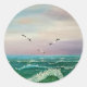 Ein ruhiges Bild des Meeres erfasst die rhythmische Bewegung der Wellen und rollt sanft, aber mächtig unter einem riesigen Himmel. Die Wellen, die mit weißen Kippen bedeckt sind, Wappen entlang des tiefblauen Wassers, jedes reflektiert eine Touch Sonnenlicht. Im Vordergrund gleiten Möwen anmutig über das Wasser, ihre Flügel breiten sich aus und werfen zarte Schatten auf die Wellen unten. Der Horizont dehnt sich endlos aus und verbindet sanfte Töne von Himmel und Meer, wodurch ein Gefühl von Offenheit und Freiheit entsteht. Die Szene ist friedlich, aber lebendig mit dem Geräusch der Wellen und den entfernten Rufen der Seevögel.