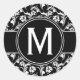 Maßgeschneiderter Aufkleber, Monogramm Aufkleber Schwarz-weiß floral elegant, fügen Sie Ihr Monogramm, passen Sie es an.