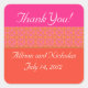 Hell tropisch und die warmen Farben des Jahres für Hochzeiten, diese Mandarine orange und rosa Design wird Ihre Gunst Aufkleber Set, um zu sagen Vielen Dank an Ihre Gäste auseinander. Im Bandbereich gibt es auch ein hübsches, strukturiertes Design, um die Farben zu teilen und zu verbessern.