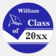Personalisierte Abschluss-Aufkleber mit individualisierbarem Jahr und Namen. Um die Hintergrundfarbe anzupassen, klicken Sie auf die Schaltfläche "Anpassen", dann auf "Bearbeiten> Hintergrund" und wählen eine Farbe.