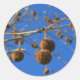 Baumkerntöpfe auf Blätter über blauem Himmel.