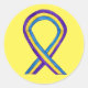 Gegenstand ist ein Kunstgemälde eines lila, blauen und markierten gelben Bewusstseinsbänder Aquarellmalerei. Die Bedeutung eines blauen, lila und markierten Bewusstseinsbändern zeigt Unterstützung für das Bewusstsein für Blasenkrebs. Diese Aufkleber können individuell angepasst werden, um für großartige Geschenke des Bewusstseins Band!