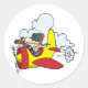 Dieses Design ist ein Cartoon-Flugzeug. Das Flugzeug ist rot und gelb mit einem Pilot. Dieses Flugzeugdesign dieses Cartoon sieht auf diesem Aufkleber großartig aus