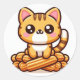 Eine niedliche kleine Cartoon Katze sitzend auf ein paar Churros!