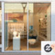 Ein individualisierbarer Schaufensterdekal, um Ihre Galerieausstellungen zu präsentieren und zu fördern.